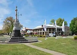 - π Mansfield Police Memorial, cnr of B320, C320 and C518. A memorial to remind us in memory of the three police officers who Kelly murdered; Constables Scanlan, Lonigan and Sergeant Kennedy. The memorial was erected just a year after the policemen were murdered.