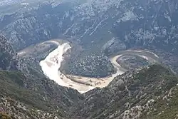 - đ Nestos Gorge. Nature is of particular beauty at Toxotes (40 km east of Kavala). It is one of the must-see attractions. In meanders, the river breaks through the limestone mountains and forms a landscape of unique beauty. At the gorge, a path of more than 10 km leads along towering cliffs and with a wonderful view of the river. To get to the starting point of the path, drive through Toxotes and follow the signs to the end of the road to a parking lot. Here are boards with exact directions. Most visitors walk the path for only 1-2 km and then return to the car park. There is also a snack bar with souvlaki and cold drinks. In the summer, take a dip in the ice-cold waters of Nestos. The water is so cold, that even in the hot days of July some overcoming needs to be submerged. A large sandy beach invites you to linger. The water quality is good, the flow but quite strong. There are also canoe tours through the gorge, which are highly recommended. From Galani, a small settlement between Toxots and the car park, a winding road leads to a hilltop with wonderful views of the Nestos Gorge. The road is signposted as a "scenic road". The trip is highly recommended.