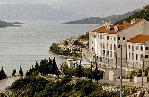 - 🌍 Klek peninsula is across the inlet from Neum town. When BiH is described as having 20 km of coastline, it's factoring in this peninsula, as the highway cuts inland through Kamenice to total 9 km. Klek is wooded and a road runs up it to a marina at Opuće. The very tip, hard to believe, is disputed between BiH and Croatia. From here you look north across the bay to the Pelješac bridge and the Croatian villages of Komarna and Klek - the name means "key".