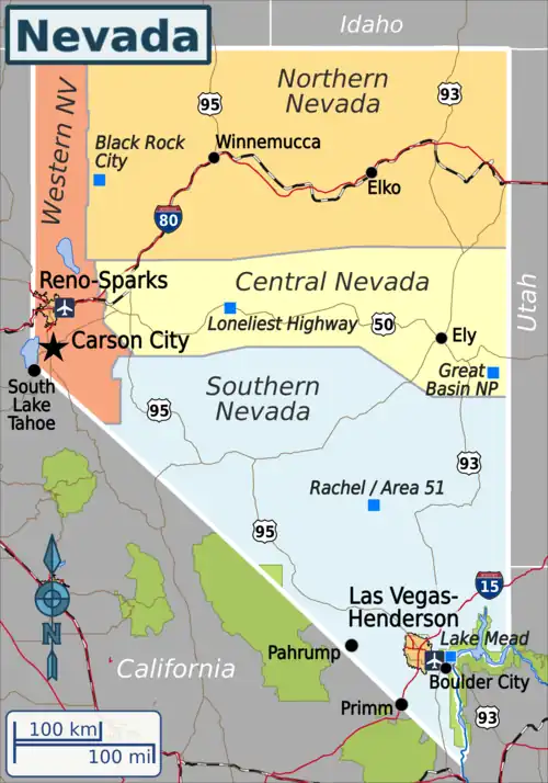 | Northern Nevada (Elko County, Humbolt County, Pershing County, northern Eureka County, northern Lander County) Mostly sparsely-populated desert |