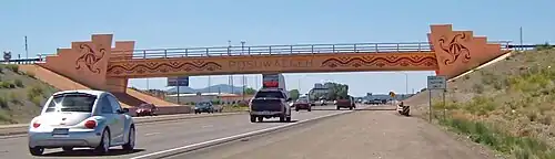 One neat thing about New Mexico (at least for the linguist) is that Native American toponyms are used on road signs and overpasses on reservation lands, even while Anglicized or Spanicized names are used on exit signs and maps. For example, the town of Pojoaque in Santa Fe County has an overpass with the phrase "Posuwaegeh", the Tewa name for the town, written on it.