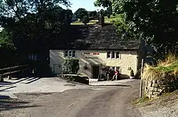 - ๐ Little Mill Inn, Rowarth, SK22 1EB (2ยฝ miles northeast; exit New Mills on Mellor Road, after 1ยฝ miles turn right into Shiloh Roadโsignposted Chisworth, Rowarthโthen take first right (no through road) after Moorfield Arms), โ +44 1663 743178, info@thelittlemill.co.uk. Characterful out-of-the-way place in delightful rural setting next to stream with replica waterwheel. Streamside garden (slightly spoilt by oversized decking erected for the 2006 World Cup) with adventure playground, and Pullman railway coach converted into overnight accommodation. No public transport. Free house, decent food. Live music on Friday nights. Close to pretty hamlet of Rowarth, in good walking country (the streamside path north towards Higherfold Farm is particularly attractive).
