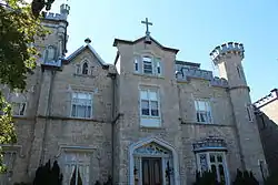 - π Masonic Care (Formerly College of New Rochelle), 29 Castle Place. The College of St. Angela, as it was known from its founding in 1904 until it became College of New Rochelle in 1910, was the first Catholic women's college established in New York State. Its campus is now a retirement community. The campus is pleasant and full of neo-Gothic buildings, some of them mock-castles with fanciful crenelations. It probably isn't worth a huge detour, but if it's not out of your way, it is a nice sight to see, especially in April and May when many trees and bushes are in bloom. Toward the southern end of the campus, there is a building with a very peaceful though relatively plain chapel, with very nice paintings of the Stations of the Cross.
