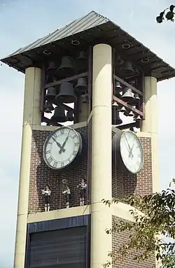 - Glockenspiel in Schonlau Park. New Ulm's glockenspiel is one of the world's few free-standing carillon clock towers. It stands 45 ft (14 m) high, and its largest bourdon (bell weighs 595 lb (270 kg), while the total weight of the bells is 4,000 lb (1,800 kg). The bells chime the time of day in Westminster style.