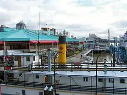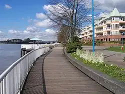 - π Waterfront Esplanade (along the Fraser River; eastern end starts at Westminster Quay). 1.3 km (0.81 mi) long, well maintained pedestrian path line, lined with garden beds full of flowers. New Westminster's closest equivalent to Vancouver's Seawall.