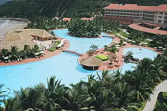 - 🌍 Vinpearl Resort (On an island in Nha Trang Bay. You can get there by cable car). Luxury hotel with the biggest pool in Vietnam. Guests have unlimited access to the water park. US$200-500.