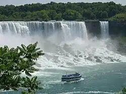 The international boundary runs approximately through the middle of the Horseshoe Falls, the largest of the three. Despite this, the Horseshoe Falls are often called the "Canadian Falls". The American Falls, the Bridal Veil Falls and the two islands are in the USA. See the individual city articles Niagara Falls (Ontario) and Niagara Falls (New York) for local listings for each side.