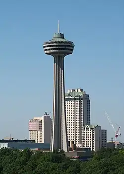🌍Skylon Tower,5200 Robinson St,☏ +1 905-356-2651,skyinfo@skylon.com.Summer hours 8AM-midnight, winter 11AM-9PM.520-ft (160-m) tower that has an observation deck. There are two restaurants with a great view of the falls. One is a revolving restaurant, the other is a buffet. There are arcade games in the base.$12.95, child: $7.55, some online discounts.