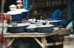 - A great street food lady with fufu and wagashi under a big tent (I): Wagashi (friend cheese) is also sometimes available at a very popular food tent that runs from 09:00 to 13:00 across from the Grand Mosquée, on the street heading south. It is at the crossroads on the south-eastern corner of the grand mosquée compound. There is usually a swarm of taxicabs parked there while drivers have breakfast/brunch. Good pounded yam (fufu) and lemu-hari drink too.