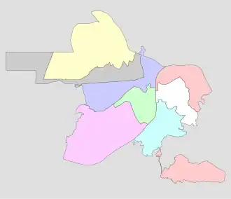 The city is divided by the River Oka into two major parts: the Upper city (Verkhnyaya or Nagornaya chast) on the hilly right side and the Lower city (Nizhnyaya or Zarechnaya chast — what literally means "the part over the river") on the left bank of the river. The Upper city is the old historical part of Nizhny Novgorod, whereas the Lower city is larger, newer and consists of more industrial districts.