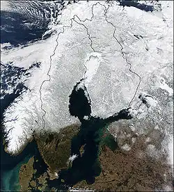 See also: Ice Age traces The Nordic countries were covered by ice during the last ice age, until 10,000 BC. The ice has set its mark on the scenery. The Earth's crust was pushed down, and is still rising in modern times, up to one centimetre each year in the Kvarken region of Sweden and Finland. The post-glacial rebound constantly moves the coastline; most modern settlements and farmlands in Sweden and Finland were navigable sea a few thousand years, or even less than 1,000 years ago. The movement is enough for old people to remember a different shoreline. The ice has set other traces in the scenery, such as enormous rocks in otherwise flat terrain and sandy terraces a hundred metre high at some valley mouths. ![]() The fjords of Norway were also created by glacial erosion, though at a longer time scale. The rising land has lifted parts of some fjords above the sea level and in this way created picturesque lakes. In Norse mythology, the gods Thor and Loki visited the giant Skrymir, who gave them many challenges. Skrymir wagered that Thor, famous for his strength and thirst for beer, could not empty Skrymir's enormous drinking horn in three sips. While Thor took great effort, he failed. Skrymir revealed that he had put the spike of the horn into the sea, to prevent Thor from emptying the horn. However, the sea level had dropped since before he drank. |