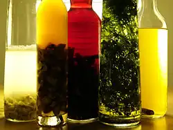 The main alcoholic beverages are beer and vodka-like distilled spirits called brännvin/brennivín, including herb-flavored akvavit (Norwegian: akevitt). Akvavit is traditionally produced from potatoes. The "line akvavit" is a variant that has been stored in oak barrels and crossed the equator line twice. Spirits are typically drunk as snaps or ice-cold from shot glasses. Wine is typically drunk in fine-dining contexts.