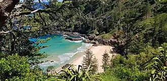- π Captain Cook's Lookout, Duncombe Bay Rd. The most spectacular views of the coastline with rock formations and birdlife around a few small islets. You can see down to the point where Captain Cook stepped ashore on his second voyage around the world. This is where the Bridle track starts. It's a very well maintained site with a lookout, boardwalk and toilets.