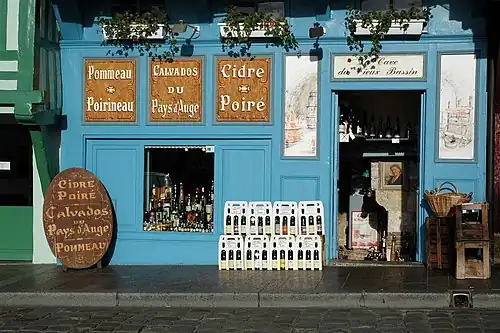 - Calvados — A brandy made from distilled cider or perry, subject to an appellation d'origine contrôlée (AOC), restricting production to a specific area with strict quality controls. Calvados is famously used for the trou normand drink between courses of a long meal.