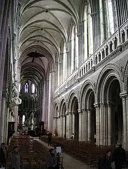 There are literally hundreds of medieval churches, abbeys and cathedrals scattered around Normandy, primarily in the Gothic and Romanesque styles. Romanesque architecture, characterised by rounded arches and lots of pillars, is often known to the British as "Norman", as it was they who introduced the style to many parts of Europe. Significant examples of this style include the Church of Saint-Étienne and its abbeys in Caen, Fécamp's Benedictine abbey, and Bayeux Cathedral. Gothic architecture developed from Romanesque in neighbouring Picardy, but is more than fairly represented in Normandy too. Gothic churches tend to be more elaborately designed than Romanesque ones, with pointed arches, flying buttresses, complex stained-glass windows and gargoyles. Important examples include Notre Dame de l'Assomption Cathedral and Saint-Ouen church, both in Rouen. The abbey at Mont Saint-Michel is notable for its Gothic style, but with several older elements retaining the Romanesque.