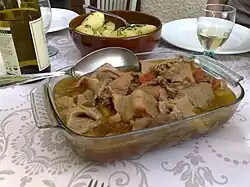 - Tripes à la mode de Caen — Beef tripe, hooves and bones, stewed in a whole bottle of cider and glass of calvados with carrots, onions, leeks, garlic, cloves, peppercorn and a bouquet garni. The autumn dish of choice for many Normans. Its official recipe, codified into poetry, is preserved by a guild of tripe butchers in Caen. While almost certainly dating from no earlier than the 14th century, local legend states that this was William the Conqueror's favourite meal.