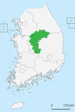 North Chungcheong (충청 북도, 忠清北道 Chungcheongbuk-do), abbreviated Chungbuk, is the only landlocked province in the country. Area is surrounded by lakes and mountains.