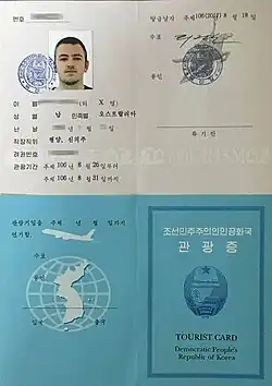 North Korean tourist visas are often issued on a tourist card. If joining a tour group, group visas are often issued on separate sheets of paper containing all the members of the group, attached with a tourist card that bears the name of the tour leader. This visa itself is never held by the tourists, although tourists can ask to take a photo of their visa. In any case, no stamp will be placed in the passport. The only way where a visa and entrance stamp will be stamped on the passport is when the visa is issued within a North Korean embassy in Europe.