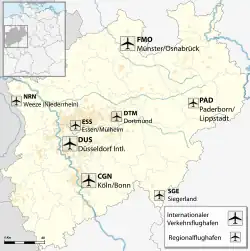 The major airports within North Rhine-Westphalia sorted by passenger numbers are: