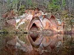 - Salaca River — With mostly fast stream, multiple sandstone cliffs and caves, suitable for several days long boat trips. A popular destination of local tourism is Mazsalaca. For water tourists Salaca River is always an adventure - peaceful and scenic sections interchanging with impressive canyons including the locally famous echo cliff Skaņaiskalns. Museum in Valtenberģu manor with expositions as Genealogy tree room, 31 Walter Hirt tree sculpture collection hunting trophies, play mouse collection. The longest natural caves of Latvia, the 300-m-long Dauģēni or X caves are located at Salaca.