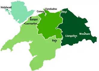 - ๐ Wrexham (Wrecsam) (Clwyd) โ the largest population centre in North Wales, with the commercial, transport and sporting infrastructure to match. Granted city status in 2022.