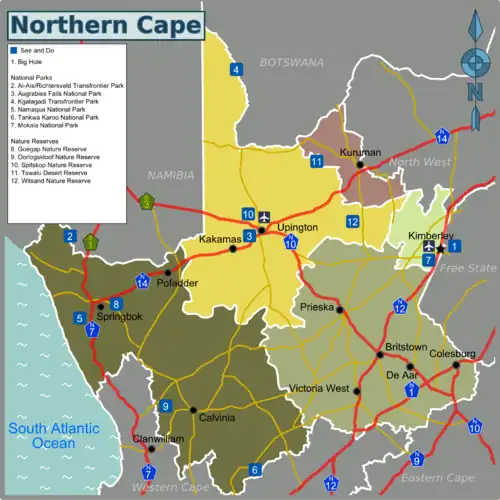- Tourism House, ,14 Villiers Street, Kimberley, β +27 53 832 2657.