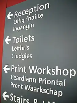 Irish or Gaeilge in both its standard and Ulster dialects (Canuint Uladh) is enjoying a revival, but is still much rarer than in the Republic. It's a Q-Celtic language akin to Scottish and Manx Gaelic, only distantly related to English, and in 2011 6% spoke it but only 0.2% used it as their everyday tongue. For a century it was shunned in the north: an Irish-speaker was either a poor Catholic potato-digger who'd failed to take the hint and push off to Liverpool, or the sort of quarrelsome (equals terrorist-suspect) nationalist who insists that Londonderry is called Derry. Irish is still only taught in Catholic schools and there are few avenues for adult learning, but it's increasingly used on signage and for official purposes, broadcast on BBC, and belatedly valued as part of Northern Ireland's culture.