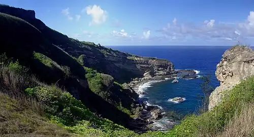 Southern islands are limestone with level terraces and fringing coral reefs. Northern islands are volcanic.