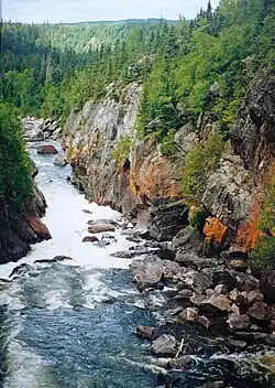 - Ouimet Canyon, near Dorion, is 100 metres (330 ft) deep, 150 metres (490 ft) wide and 2 km (1.2 mi) long. It is protected as part of Ouimet Canyon Provincial Park.