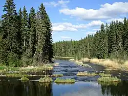 Much of Northern Saskatchewan is part of the circumpolar boreal forest (or "taiga"), which is dominated by conifers or aspen and poplar stands. Throughout this area are lakes, bogs, forest and rock outcroppings. Black spruce, jack pine once again are the main trees of the area.