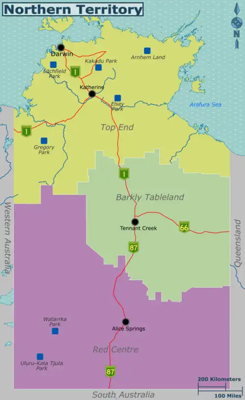 "Northern Australia" is a term occasionally used for the Northern Territory and those parts of Western Australia and Queensland north of latitude 26°S; it's not used on these pages. "North Australia" was the name of two short-lived historic administrations, in 1846/7 and in 1927-31.