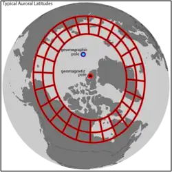 Contrary to intuition, seeing the Northern Lights isn't just a matter of heading north. The Lights occur mainly in a circular or elliptical band centered on the earth's North Magnetic Pole, which is not at the same location as the North Geographic Pole.