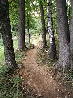 - Several springs with natural radioactive water are located in the vicinity: 🌍 spring Rafael, located directly at the singletrack mountain bike trail (be careful not to obstruct the bikers when you walk along the track), and 🌍 spring Michael and 🌍 "pond" Samuel nearby.