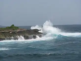 - π Devil's Tear (found by walking either a few min north from Dream Beach or south from Sunset Beach). A rocky outcrop on the south western coast. Spectacular crashing waves and water plumes. Ticket is valid for multiple days for one stay in lembongan. Rp 25,000.