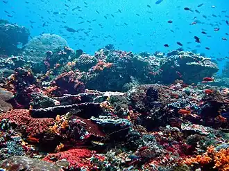 For more experienced divers, the most interesting sites are off neighbouring Nusa Penida. There are some challenging drift dives here, and dive operators will visit certain sites only when the sea conditions are safe. There are plenty of options for easier flat reef and wall dives as well. Marine highlights include large manta rays all year round, spectacular, massive oceanic sunfish (mola-mola) in season (JulyβOctober), white-tipped reef sharks, nurse sharks and the odd hammerhead. Whale sharks are far from regular, but the odd migrant is seen. Last but certainly not least, four species of sea turtle can be found here. All operators offer scheduled trips to the prime dive sites around all three islands.