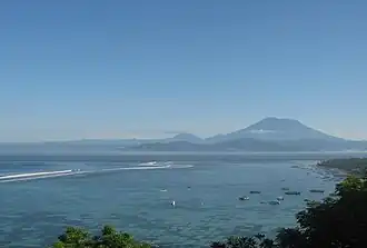 - π Tamarind Beach (between Playgrounds surf break and Mushroom Bay). Good views back to Bali, and of Mount Agung especially.