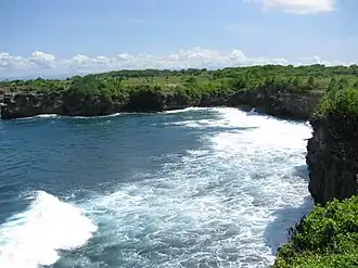 The north end of the island is fringed by an important mangrove forest, and the eastern side of the island is separated from neighbouring Nusa Ceningan by a shallow estuarine channel.
