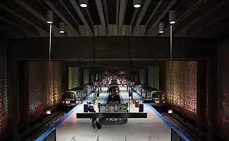 The π CTA Blue Line terminates at the space-age station for O'Hare, designed by the firm of architect Helmut Jahn. Trains run 24 hours a day, as frequently as every six minutes during peak periods and as infrequently as every half-hour overnight. The trip to the Loop should take about 48 minutes, but never cut things close with the CTA. The station is located beneath the Bus/Shuttle Center, closest to Terminal 2 but easily accessible by underground passages, with moving walkways, from Terminals 1 and 3. Those arriving at or departing from Terminal 5 (international) must take the automated Airport Transit System between Terminals 2 and 5. The cost of the train from O'Hare is $5 instead of the regular $2.50 anywhere else in the city. When taking the CTA to O'Hare, it's recommended to board the train at the front in the OβHare direction, as the entrance is at the front of the train (back of the train in the Forest Park direction). You do not need to pay the extra fare upon exiting the station. Get off at the Clark/Lake Station in downtown Chicago (the 'Loop') and transfer to the Orange Line train to continue to Chicago Midway Airport. Get off the Blue Line train at the Clinton Station and walk up a couple blocks on Clinton St to reach Union Station.