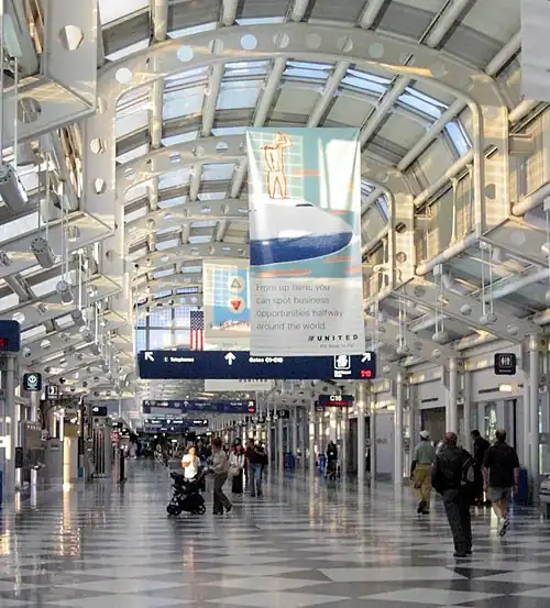 United Airlines has its main hub at O'Hare, since its corporate offices are located in downtown Chicago. O'Hare is also a major hub for American Airlines. As such, a rule of thumb is that Terminals 1 and 2 are dominated by United and its alliance partners; Terminal 3 is given over to American and its partners, and only Concourse L of Terminal 3 and several gates in Concourse E of Terminal 2 are for everybody else.