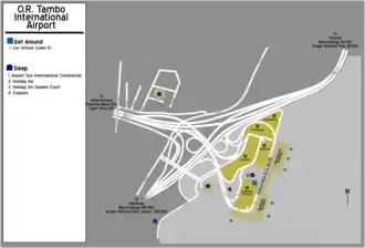 - 🌍 Garden Court OR Tambo International Airport, 2 Hulley Road, Isando, ☏ +27 11 392-1062, gcjhbairport@southernsun.com. 3 km from the airport, transport to/from airport and shopping centres.