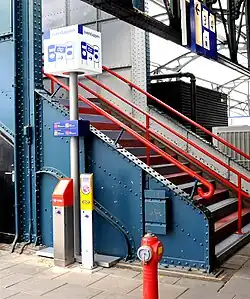 For passengers travelling to a point outside the Netherlands and have used OV-chipkaarts for the domestic leg of their journey, they should check out at the last station in the country for which they do not have a pre-purchased ticket for. Likewise, passengers entering the Netherlands and do not have a pre-purchased ticket for the entire domestic segment need to check in at the first station not covered by their ticket. The check ins and check outs can be done at the yellow poles on the platforms. This step is not necessary if a passenger's pre-purchased ticket covers their entire train journey.