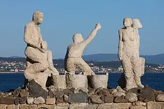 The estuaries of the Rías Baixas are dotted by islands, and O Grove is almost one of them, but the tombola of O Vao links it to the mainland. The original name was Ogrobe but the initial "O" got separated and confused with the Galician word for "the". It has a small fishing trade, especially shellfish, and morphed into a beach resort in the 20th century.