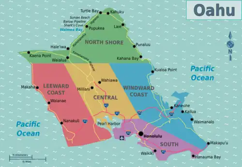 | Windward Coast The wetter and more lush part of the island, home to many secluded beaches, sleepy villages, and one of the largest Marine Corps bases in the Pacific. |