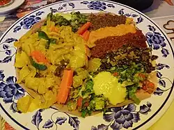 - 🌍 Cafe Colucci, 5849 San Pablo Ave, ☏ +1 510 601-7999, info@cafecolucci.com. Daily 10:45AM–10PM. Ethiopian food served traditionally on injera, with an excellent selection of vegetarian dishes, friendly wait staff and excellent decor. Try the mitten shuro. Full catering services available. Online ordering. Third party online delivery. $15-30.
