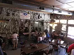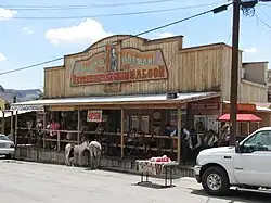- 🌍 Oatman Hotel, 181 Main St, ☏ +1 928-768-4408. Former two-story, eight-room inn built in the early 1900s and supposedly haunted by several ghosts. Now a restaurant/bar and museum, no longer taking overnight guests. The restaurant has a wall papered with dollar bills. The suite where Carole Lombard and Clark Gable spent their honeymoon may be viewed; there's also fudge and souvenirs for sale.