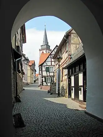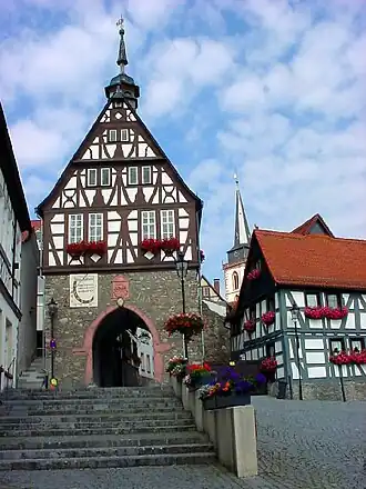 The highlight of Oberursel is its Altstadt (old town area), a residential area with many half-timbered houses. On its east side is the historic Marktplatz (market place). The streets Strackgasse and Vorstadt connect Marktplatz to the more modern shopping district along a pedestrian mall. As you walk Strackgasse and Vorstadt towards the Marktplatz, you will notice that the buildings become older as they transition from modern to medieval.