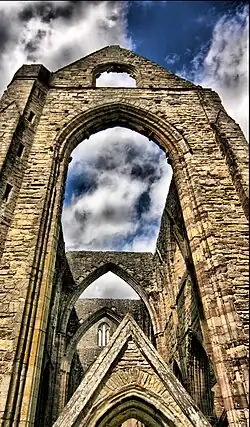 Leaving Monmouth, the trail begins with a climb out of town through wooded slopes, soon offering elevated views over the Wye Valley. The route winds through a mix of forest paths and open pasture, crossing small streams and following the contours of the hillside. As it progresses, the landscape becomes more dramatic, with occasional glimpses of cliffs and the distant Severn Estuary. One of the highlights along this stretch is the Devil's Pulpit, a limestone outcrop with a striking view across the river to the ruins of π Tintern Abbey.