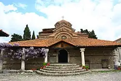 - 🌍 Church Saint Nicholas Bolnički & Church of Saint Mary Bolnička (Црква „Св. Никола Болнички“ и Црква „Св. Богородица Болничка“). These two small neighbouring churches were built in the 14th century with dormitories around them which were used as quarantine stations for visitors of the city. After the coming of the Turks, they were turned into hospitals. That is where the name "Bolnički" comes from (bolnica means hospital). Saint Nicholas Bolnički was built in 1313. The small addition on the roof was influenced by Adriatic architecture and it imitates the bell-towers of the churches on the Adriatic coast. The frescoes are in decent condition and include interesting portraits of some royals, of Saint Nicholas and of an Ohrid archbishop. Look for the fresco of God’s hand protecting the pure souls inside a tiny window. Saint Mary Bolnička's frescoes are in poorer condition. Even though the church is tiny there is a transverse vault, so the roof is in the shape of a cross. 50 denars.