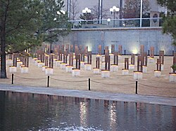 - π Oklahoma City National Memorial, 620 N Harvey Ave (between N. Harvey Ave and N. Robinson Ave at NW 5th St.), β +1 405-235-3313. 24 hr. Park rangers on site 8:30AM- 5PM, daily. This is the memorial for the Oklahoma City bombing of the Alfred P. Murrah Federal Building that occurred at 9:02AM on April 19th, 1995. At each end of the memorial are the bronze 'Gates of Time'. At one end 9:01 for before and the other 9:03 for after. Between the gates is a reflecting pool and on the south side are the 168 memorial chairs, one for each person that perished and smaller chairs for the children. On the north side of the pool is the Survivor Tree, an American elm that survived the blast. At the west end along Harvey Ave. is the fence where visitors leave memorabilia. Outdoor memorial is free.