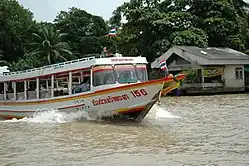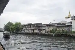 If your accommodation is around Sukhumvit or Silom, your starting point will be ๐ Ratchathewi station(N1), easily reached from the Skytrain Sukhumvit line. Take exit 1 and head a few hundred metres south (after walking down the stairs, turn 180 degrees and walk down the street) and walk over the bridge across the Saen Saeb canal. To your right, you will see the small, rickety pier called ๐ Saphan Hua Chang. Board the next canal boat that comes barreling down towards the west (make sure the boat is heading left as you stand on the pier, from under the bridge) โ but move quickly, because these boats don't wait for lingerers! Pay your fare (12 baht, as of 2024) and enjoy a view into the backyards of Bangkok. Some points of minor interest that you will pass along the way include: